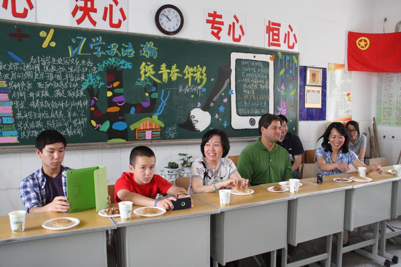 曹慧副校长亲自接待了贵客们,两校就彼此的情况进行了介绍,并且就自己感兴趣的地方,进行了热烈的互问互答,气氛热烈。上午第四节课,客人们来到了七14班,参加了一堂别开生面的展示课。