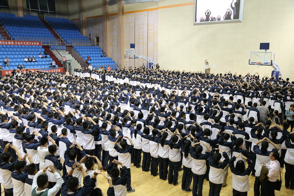 集中在常州工程职业技术学院的操场上,九年级的同学在开营式上“沸腾斗志,梦想在前”。
