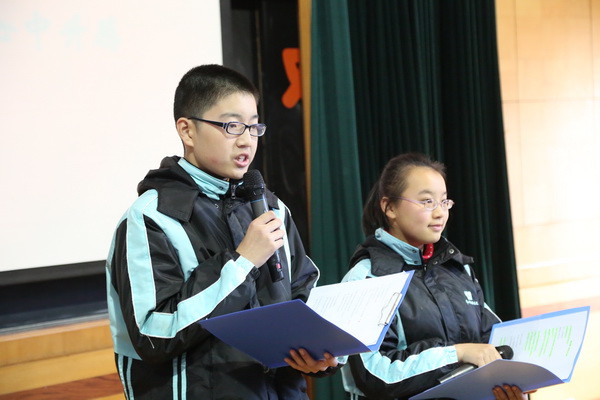 在声情并茂的诗朗诵声中,会议正式开始。首先,是第八届小记者团团长周子晨同学的的工作总结。字字深情,忆起曾今小记者参加的活动,学长感慨万端。肯定成绩,总结不足,为我们第九届小记者指明了前进的方向。